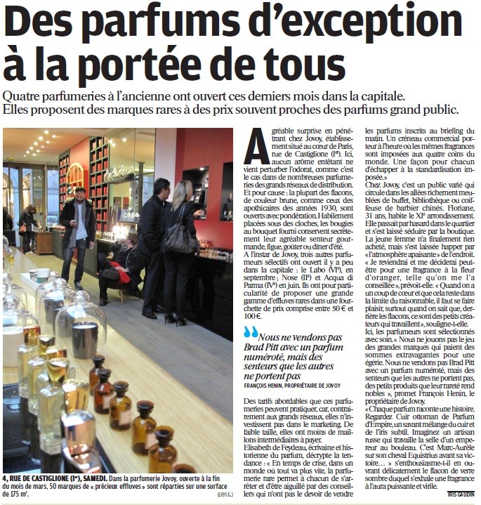 Pour réagir sur l'article, j'adore tout ce qui touche aux parfumeries/savonneries, etc. donc j'aimerais beaucoup me rendre à Paris pour aller voir ça, mais par contre j'ai jeté un oeil aux prix sur le site... Et... pour moi ce sont parfois des prix exorbitants. Le voyage à Paris (habitant à l'ouest de la Belgique) + jusqu'à 230€ pour un parfum c'est énorme, même pour une occasion comme un anniversaire...